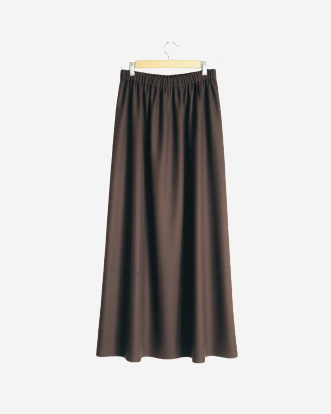 Brown suede modest skirt with soft texture and wide silhouette. Easy to wear with an elastic waist and side pockets.