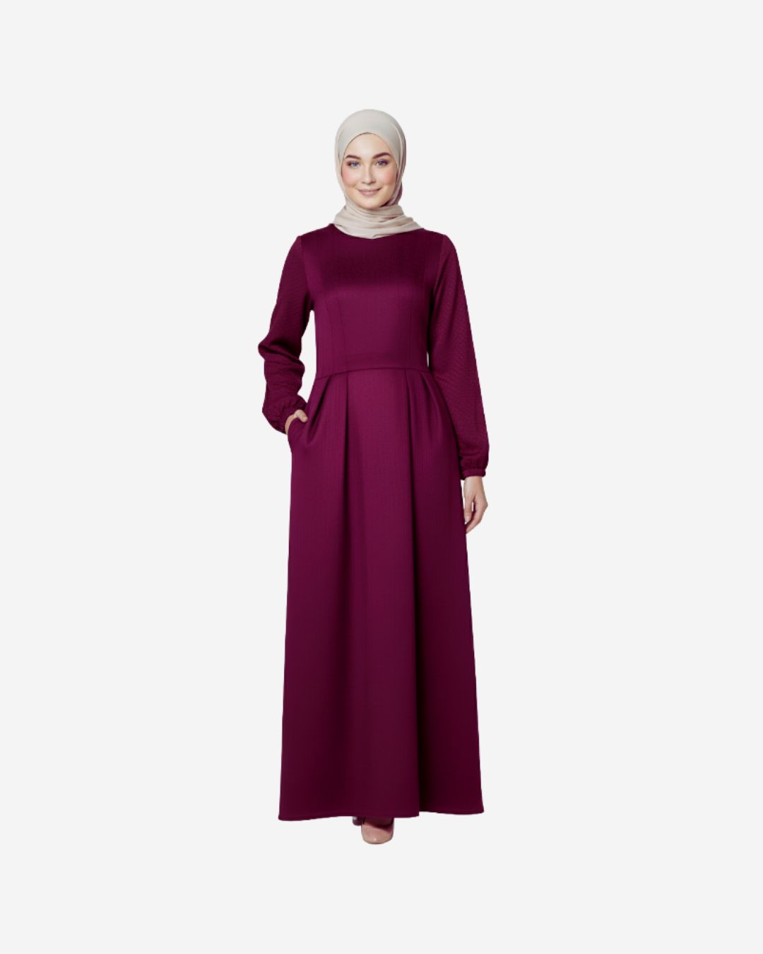 The Asmaa Basha Burgundy Suede Modest Dress is your go-to choice for elegant winter evenings. Made from velvety suede, it offers comfort and sophistication. The simple design with hidden side pockets ensures practicality without compromising style.