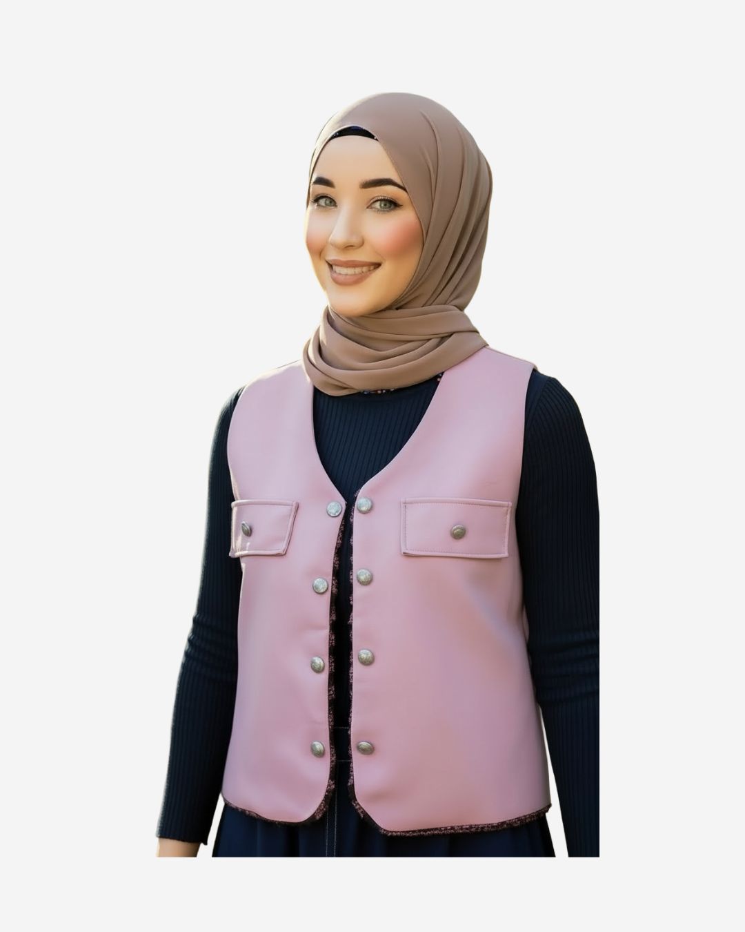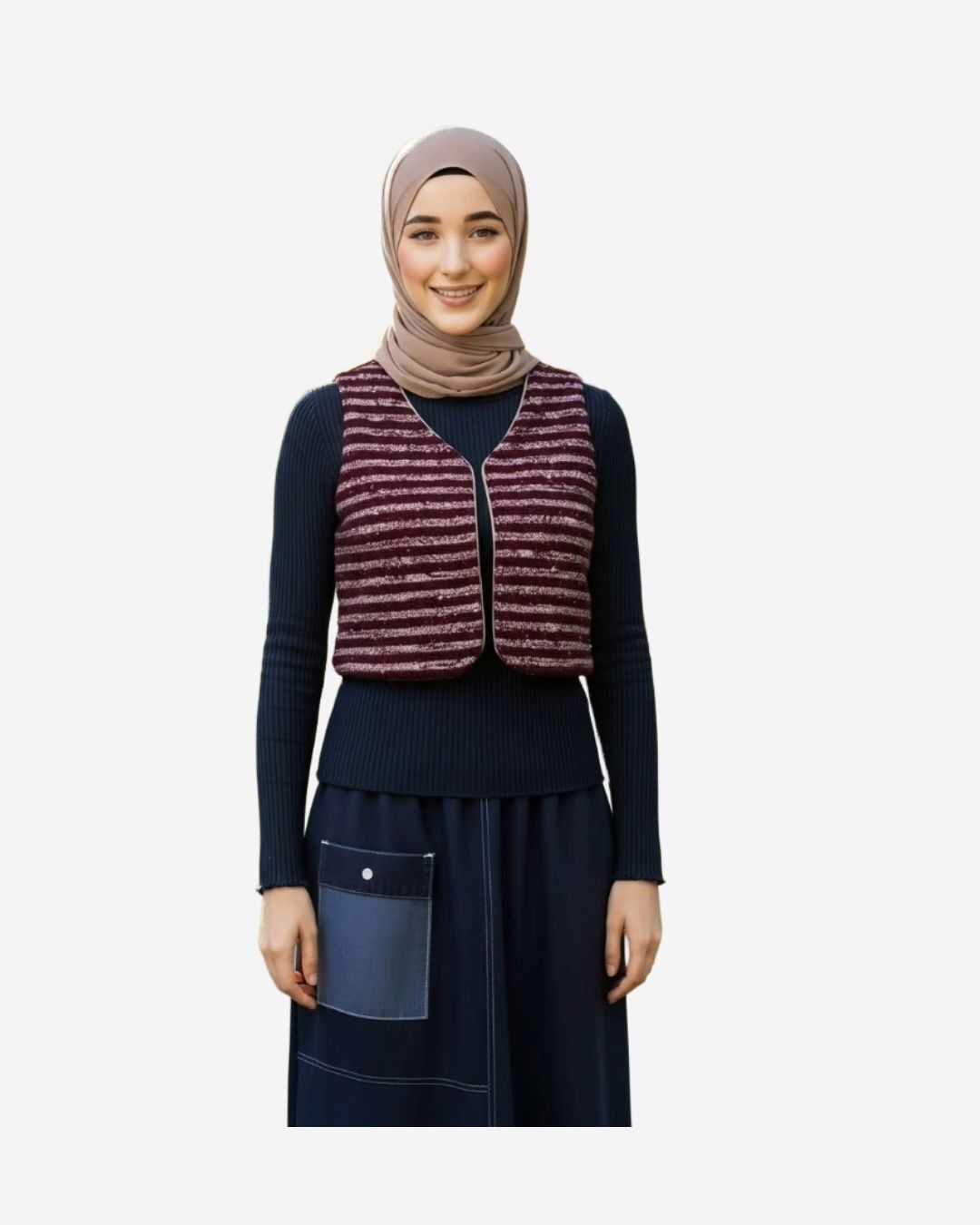 This double-face vest from Asmaa Basha blends classic textures with modern modest style.