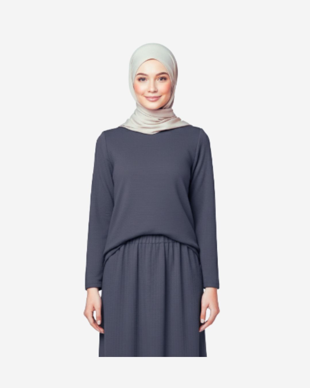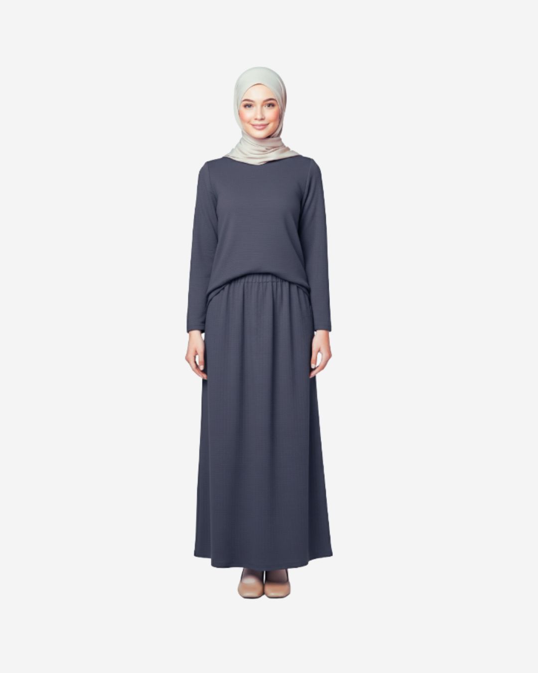 A versatile two-piece grey knit set designed for elegance, comfort, and everyday modest wear.